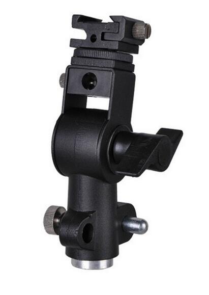 Ve střední části adaptéru je otvor pro nasazení deštníku, který lze aretovat šroubem. Celokovové provedení zaručuje maximální bezpečnost a stabilitu vašeho fotonářadí. Kloub držáku má ozubení což umožňuje 100% aretaci Vámi nastaveného úhlu.