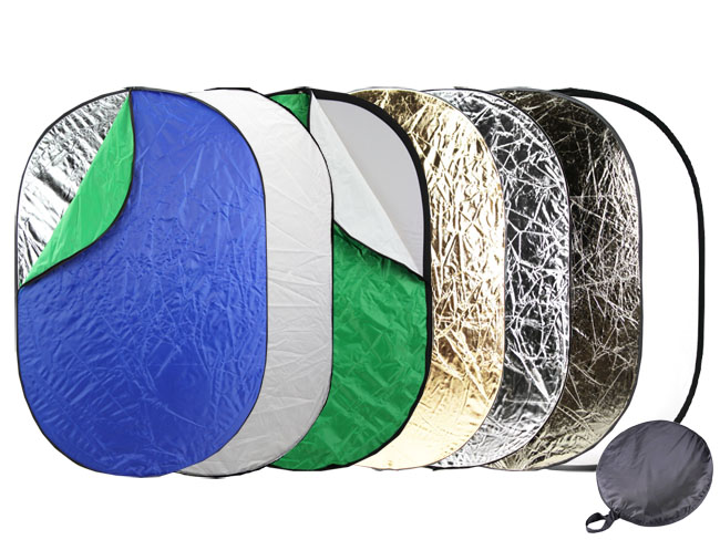 Odrazová deska 7 v 1 jsou univerzální odraznou sadou, která se skládá z vypínací – skládací pružiny s difuzní bílou látkou pro změkčení světla. Na pružinu můžeme navléknout odrazovou látku s možností použití odstínů: difuzní, bílá, stříbrozlatá (viz.foto), stříbrná, zlatá, zelená, modrá. Kruhová a oválná deska je snadnou variantou pro cestování, protože vypínací pružinu můžeme složit do menších kruhů. Odrazná sada 7-in-1 je dodávána v přepravním pouzdře.