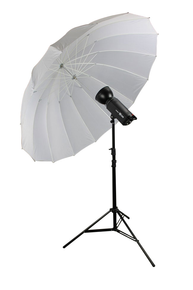 Stativ a zábleskové světlo nejsou součástí ceny. Pouze tento 140cm deštník.