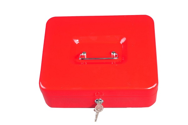 Pokladna zamykatelná na klíč (součástí jsou 2 klíče).