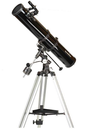 Zrcadlový dalekohled typu Newton, 114/900 mm, světelnost f/7.9, hledáček 6x30, okuláry 20mm a 10mm (45x a 90x). Dalekohled je vybaven německou rovníkovou montáží EQ-2 na duralových stojnách s odkládací plochou na příslušenství s jemnými pohyby v obou osách. Velmi příznivý poměr cena/výkon.
