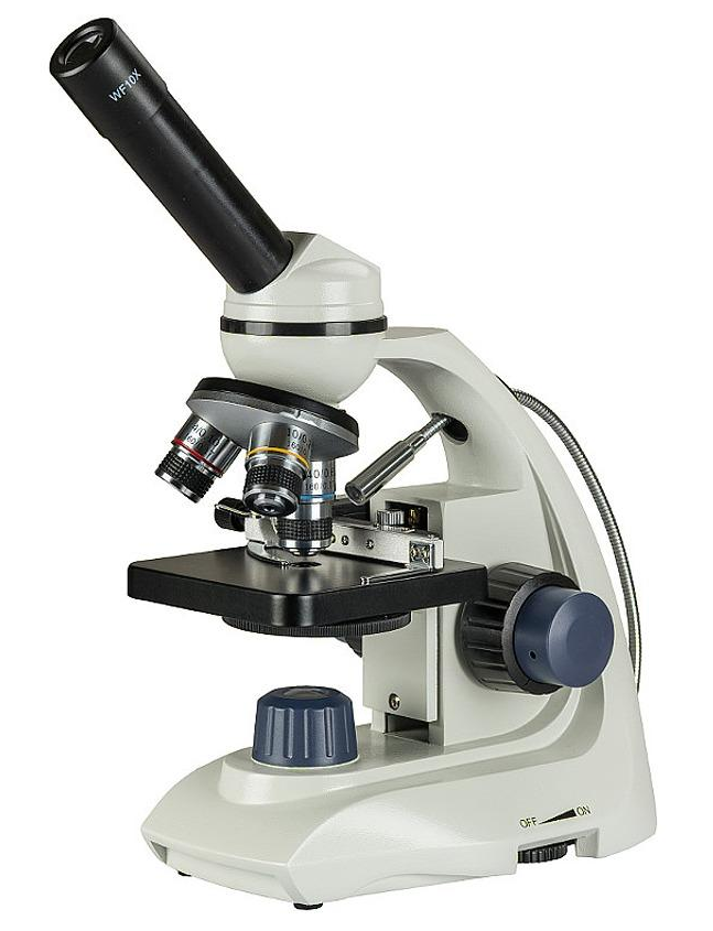 Biologický mikroskop, určený pro základní domácí i školní použití. Mikroskop je vybaven horním i spodním osvětlením pomocí LED, spodní osvětlení je regulovatelné. Otočná okulárová hlavice umožňuje výběr pozorovací pozice. Příjemným doplňkem v této cenové kategorii je křížový stolek s odečítacím noniem, umožňující jemný pohyb preparátem stejně jako jemné ostření. Pod stolkem se otočný měnič barevných filtrů. Součástí je malá sada preparátů a nářadí na jejich přípravu. Napájení osvětlení mikroskopu je zajištěno 3 bateriemi AA, přístroj je tak nezávislý na vnějším napájení.